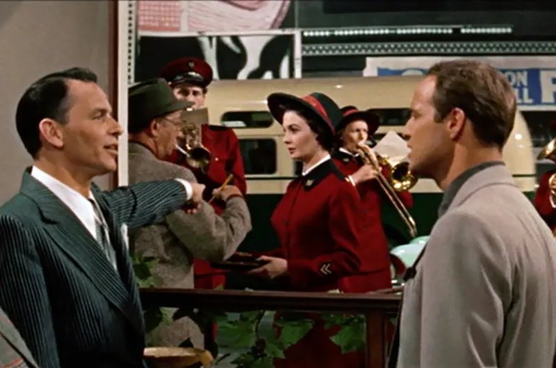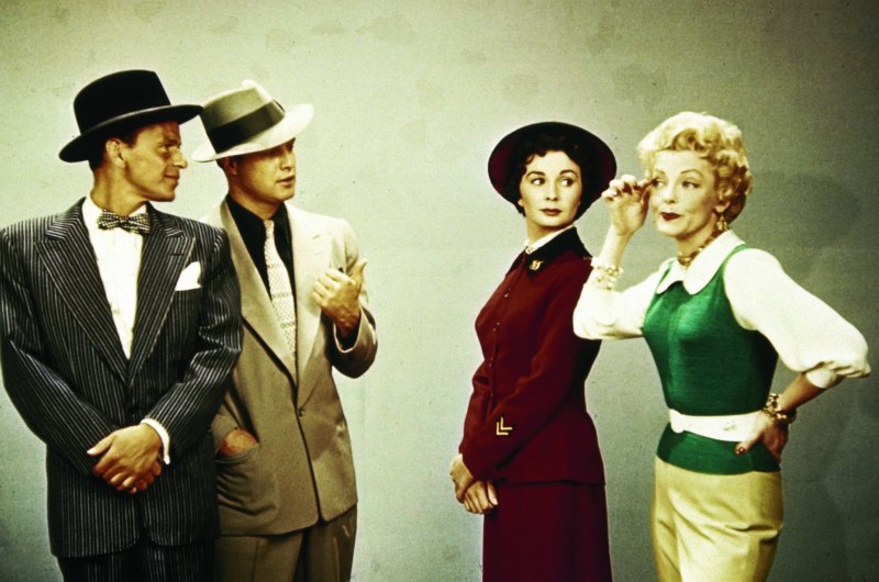 MARLON BRANDO, JEAN SIMMONS, FRANK SINATRA, VIVIAN BLAINE, ROBERT KEITH, STUBBY KAYE, B.S. PULLY, JOHNNY SILVER, SHELDON LEONARD, DANNY DAYTON, GEORGE E. STONE, REGIS TOOMEY, KATHRYN GIVNEY, VEDA ANN BORG