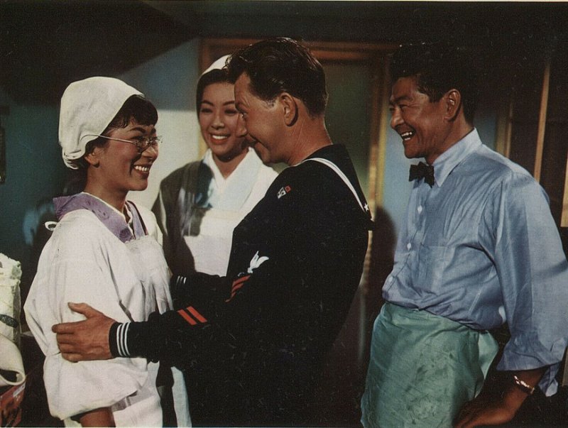GLENN FORD, DONALD O'CONNOR, MIIKO TAKA, JAMES SHIGETA, MIYOSHI UMEKI, MICHI KOBI, HOWARD ST. JOHN, JOE FLYNN, CHET DOUGLAS, TSURUKO KOBAYASHI, HARRIET E. MacGIBBON, ROBERT KINO, BOB OKAZAKI, HARLAN WARDE, NANCY KOVACK, TED KNIGHT, BILL QUINN