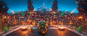 Hacer realidad un mundo de semejante magnitud requirió disciplina e imaginación a partes iguales. «Cuando cuentas una historia de estas proporciones, la fluidez es fundamental», asegura Jelenic. «Tienes que centrar la atención del público, pero, en un mundo tan inmenso, siempre está pasando algo allá donde mires. Se convierte en un desafío en cuanto a iluminación, animación y personajes. Hay capas de actividad desarrollándose en todas direcciones. Es imprescindible coreografiar la acción para que la gente pueda seguirla y no se pierda en el entorno».