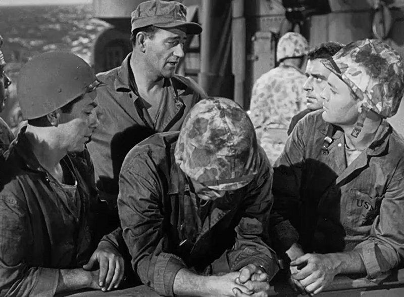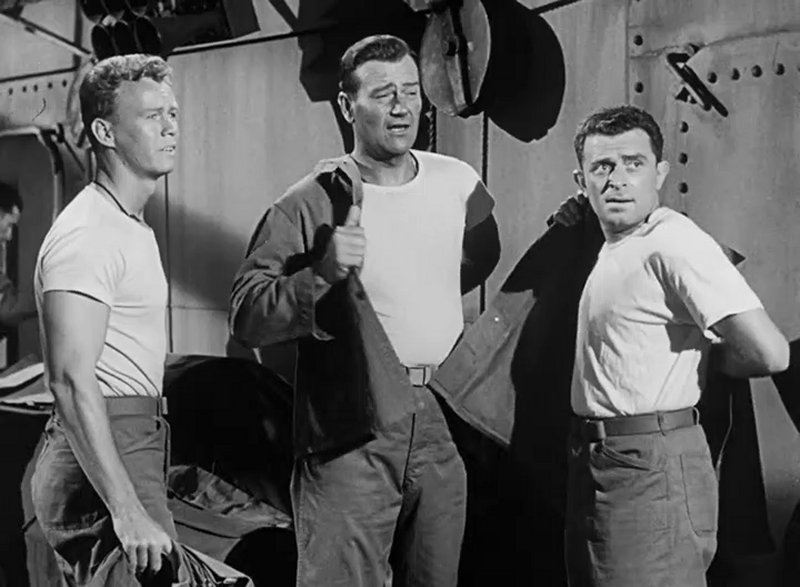 JOHN WAYNE, JOHN AGAR, ADELE MARA, FORREST TUCKER, WALLY CASSELL, JAMES BROWN, RICHARD WEBB, ARTHUR FRANZ, JULIE BISHOP, JAMES HOLDEN, PETER COE, RICHARD JAECKEL, WILLIAM MURPHY, GEORGE TYNE, HAL BAYLOR