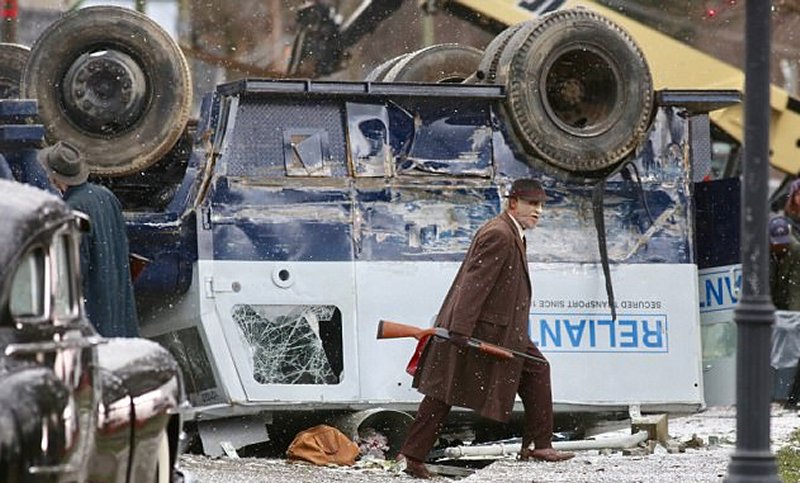 Sin embargo, la parte negativa del techo bajo y las tomas panorámicas era que no había lugar para colgar los focos. “No había sitio para colocar la iluminación convencional de la película”, dice McGarvey. “En un set de esta magnitud, convencionalmente habría luces dispuestas por encima, para la luz de relleno y la contraluz. Recuerdo que cuando vi los planos por primera vez pensé: ¿cómo demonios voy a iluminar esto? Es un techo bajo, pero con Martin encontramos una manera de dar luz a cada área para poder rodar de manera efectiva sin focos de luz en el set”.