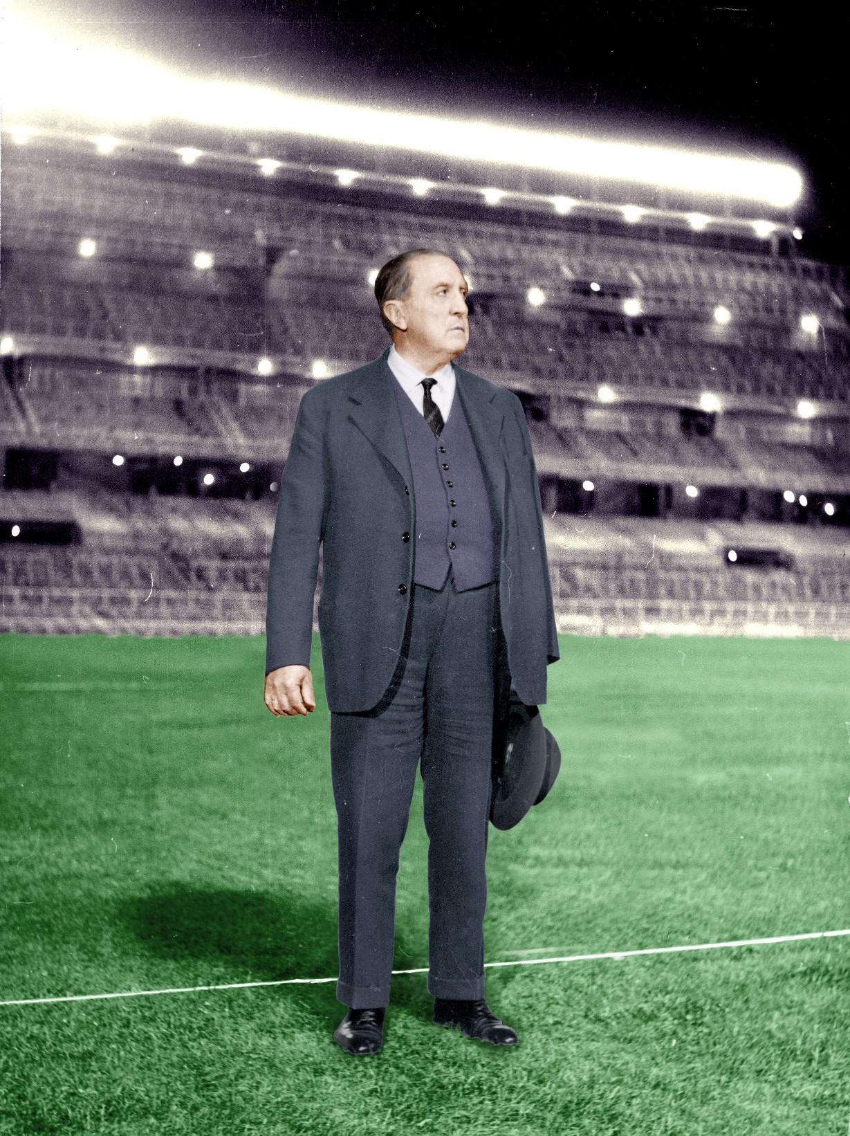 Santiago Bernabéu nace en 1895 en Almansa, Albacete. El menor de siete hermanos, muy pronto se trasladó a Madrid para estudiar en el colegio de Los Agustinos en El Escorial donde tuvo lugar su primer contacto con el fútbol.