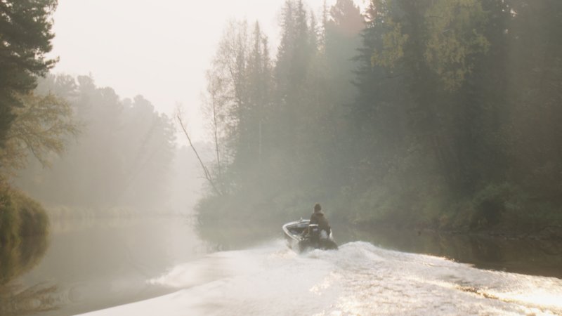 The helicopter scene is central. Not only was I not hoping for it, but I didn’t even know it was possible because of how difficult and expensive it is to travel by helicopter. The poacher’s arrival, the devastation they bring with their automatic weapons, sets up the imminent destruction, the end of Sacha’s dream of isolation, or simply the end of the possibility of living together. When the helicopter arrives, in a fury, we suddenly measure the greater danger that is threatening this place. The characters of Braguino, both the children and the adults, seem very fragile and unarmed in the face of the forces at hand. That’s when the story shifts to a tragedy.