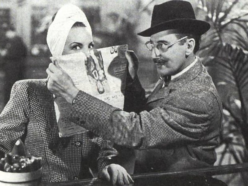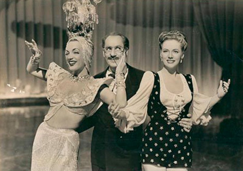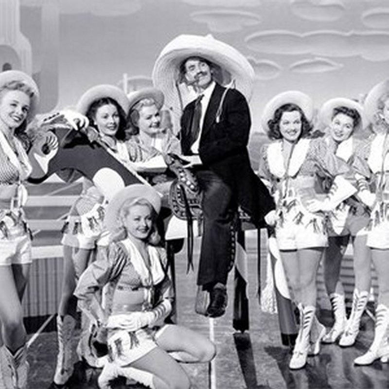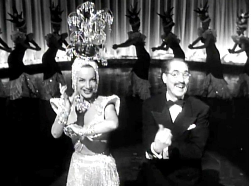 GROUCHO MARX, CARMEN MIRANDA, STEVE COCHRAN, ANDY RUSSELL, GLORIA JEAN, ABEL GREEN, LOUIS SOBOL, EARL WILSON, THE DE CASTRO SISTERS, RAUL REYES, EVA REYES, RALPH SANFORD, IGOR DEGA, KAY MARVIS, MERLE McHUGH