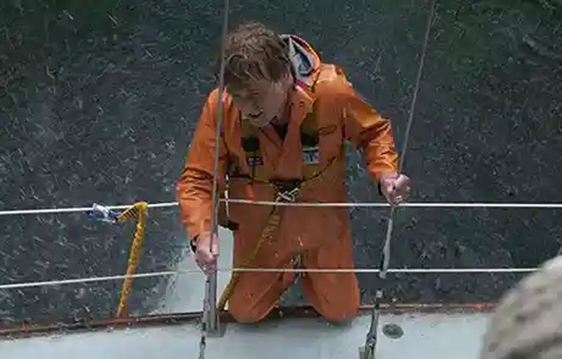 En otras escenas nada tranquilas, el actor, conocido por usar dobles en contadísimas ocasiones, se sube al mástil de 20 metros, es arrastrado por el barco o nada entre las velas sumergidas.