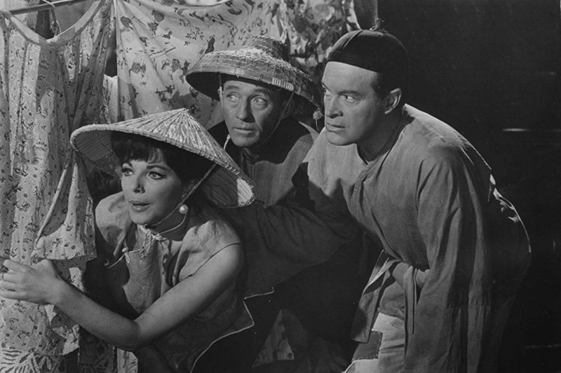 BING CROSBY, BOB HOPE, JOAN COLLINS, ROBERT MORLEY, WALTER GOTELL, FELIX AYLMER, MICHEL MOK, ALAN GIFFORD, KATYA DOUGLAS, ROGER DELGADO, ROBERT AYRES, MEI LING, JACQUELINE JONES, YVONNE SHIMA, DOROTHY LAMOUR