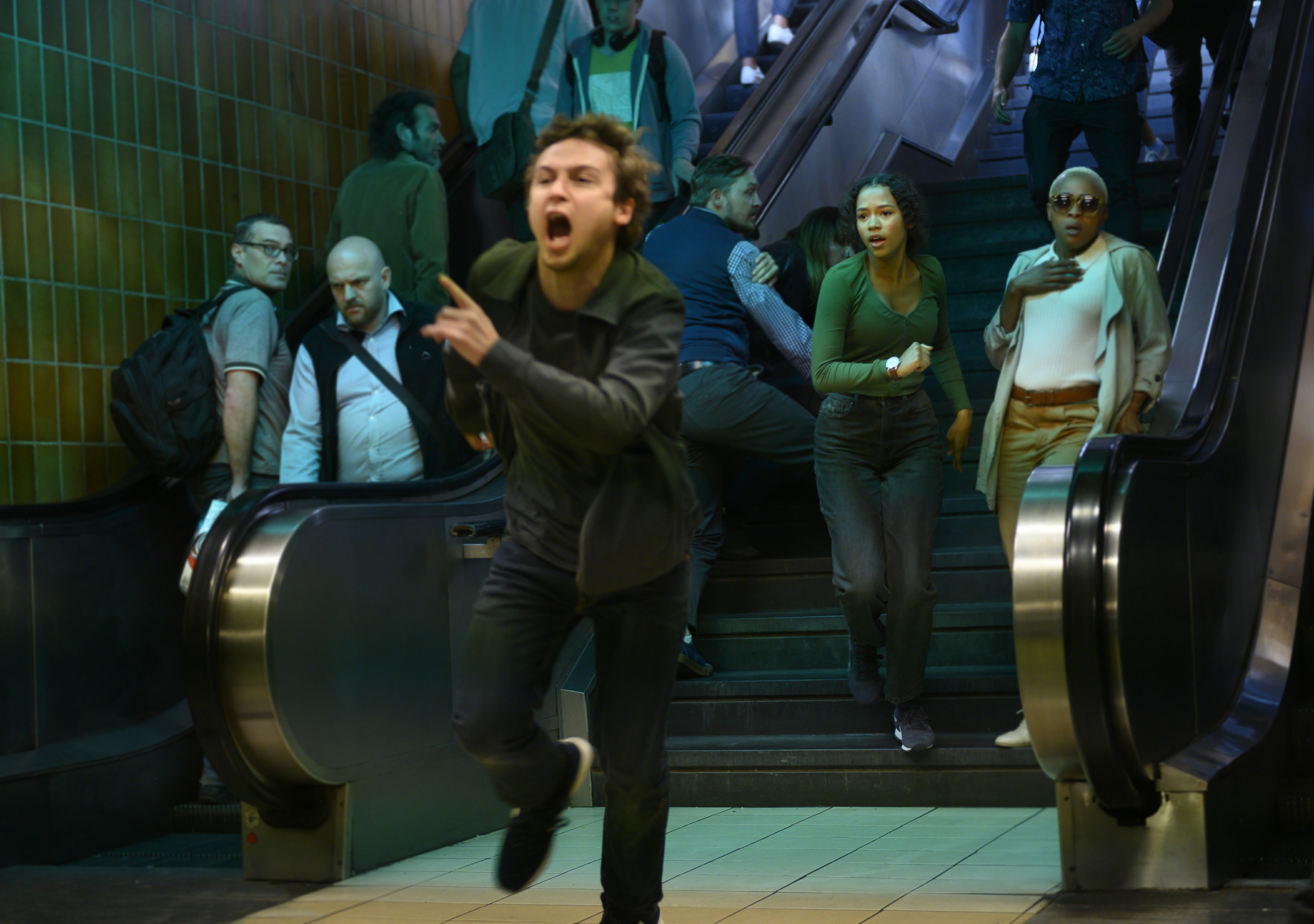 Y entonces, cuando los supervivientes avanzan se dan de bruces con otra situación completamente distinta. “Pasamos de una escena muy agresiva y ruidosa al silencio de un banco” dice el director. “Una escena que no trata de acción, sino de suspense”.