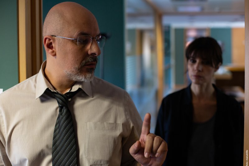 Este guion está escrito para Maribel. Habíamos hablado con Ángela Armero la guionista, desde el principio, que ella iba a ser la protagonista. El comisario iba a ser Roberto Álamo también lo tenía pensando porque le iba como anillo al dedo al personaje. Los demás actores salen de la búsqueda, van apareciendo… con Daniel Grao quería trabajar desde hace tiempo, con Ginés que he trabajado como productor no le había dirigido y es un gran actor y una gran persona con la que me siento muy bien. Me gusta que conocer de antes a los actores, haberles visto teatro, en el cine, que les haya podido ver en otros trabajos antes.
