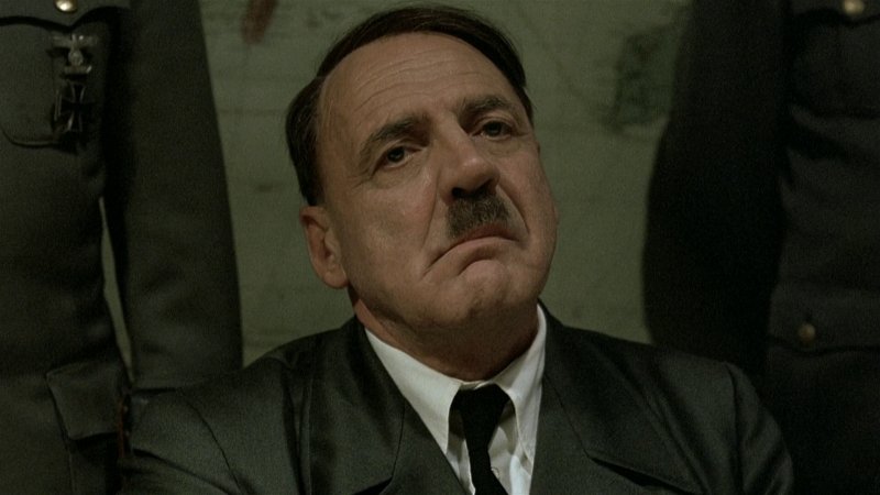 En los últimos días de Hitler este es acosado por las tropas rusas a punto de entrar en Berlín y agobiado por el peso de la responsabilidad histórica se comporta como un animal acorralado, acobardado que no halla más salida que el suicidio, antes que capitular y salvar la vida del pueblo berlinés, que le importaba menos que los millones de judíos que mandó gasear...