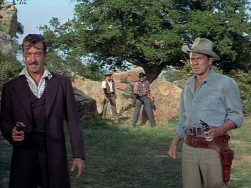 JOHN PAYNE, RONALD REAGAN, RHONDA FLEMING, COLEEN GRAY, ANTHONY CARUSO, MORRIS ANKRUM, LEO GORDON, CHUBBY JOHNSON, JOE DEVLIN, MYRON HEALEY, JOHN MANSFIELD, FRED ALDRICH, WALTER BACON, GEORGE BARROWS, JOHN BARTON, CHET BRANDENBURG