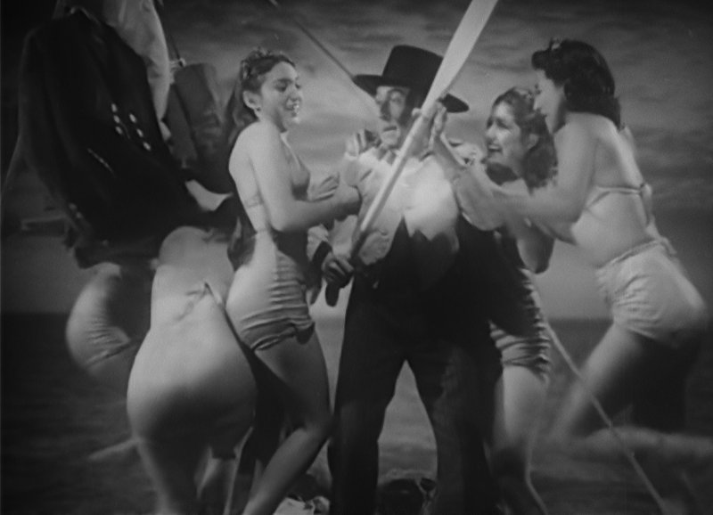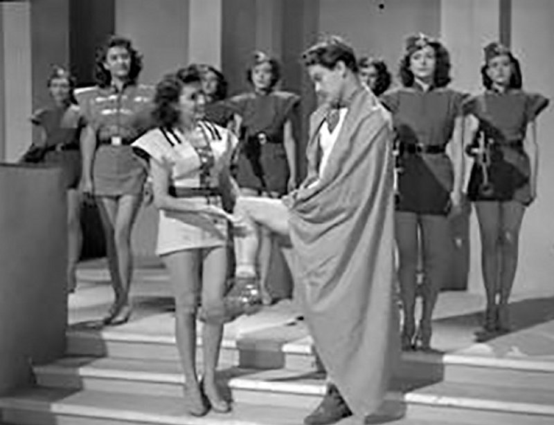 Dos supervivientes de un naufragio llegan, a la deriva, a una isla donde gobiernan las mujeres y los hombres son los servidores del reino.