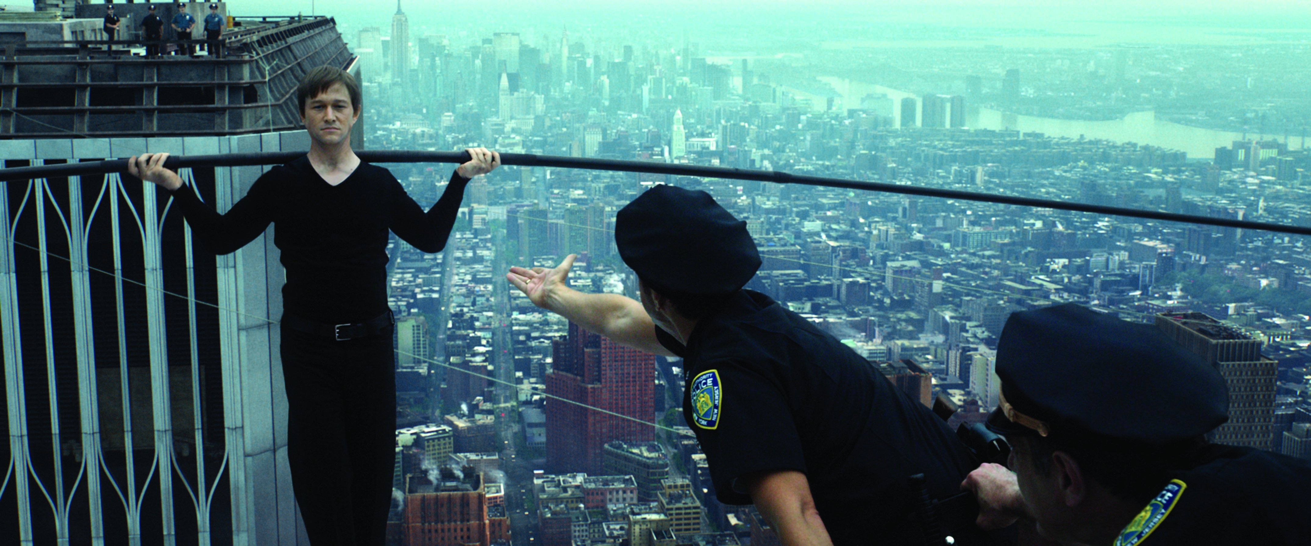 En última instancia, para Gordon-Levitt, el equilibrismo se parece mucho a la interpretación. “El primer paso es muy difícil, porque te asaltan las dudas”, explica. “Pero luego el reto era dejar de lado esas dudas y centrarte en divertirte y disfrutar –puedo hacerlo, no es tan difícil. Me recuerda a actuar. Puedes empezar a comerte el coco y pensar: ‘Oh, Dios mío, están rodando, cuánta gente mirando, no puedo pifiarla’, porque entonces estás listo. No puedes pensar así. Tienes que ser capaz de desechar todas esas ideas y centrarte. Sentí una experiencia muy similar al hacer funambulismo”.