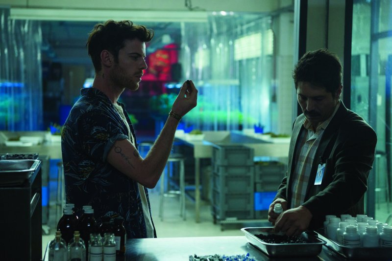 En México, Vermette y su equipo escogieron un edificio vacío para diseñar el laboratorio de medicamentos donde la compañía fabrica marihuana sintética. "Para la fábrica de hierba, vaciamos todo de la estructura existente y diseñamos un espacio del que estoy muy orgulloso", dice Vermette, quien también buscó reflejar el sentido de desplazamiento de Harold pintando de verde sórdido el motel. "Es como si hubiera algún tipo de enfermedad que influye en el color de la piel de todos los que están allí. Fue interesante jugar con eso".