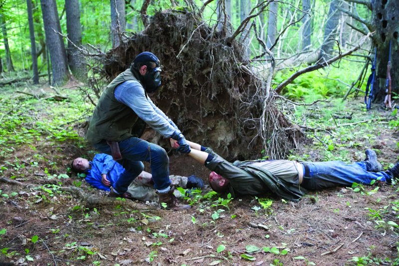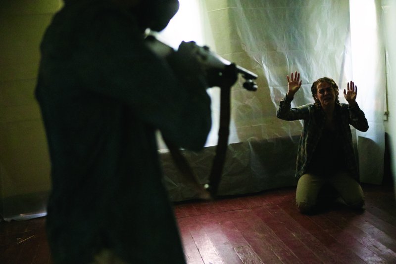 “Llega de noche” se rodó en el Estado de Nueva York, en una zona amplia que integra la colonia del artista Byrdcliffe cerca de Woodstock. El sitio tenía muchos cuartos de campesinos, donde Paul alberga a la familia de Will en la película, y resultó ser un escenario ideal para la vida doméstica que Shults imagina amenazada por un apocalipsis invisible. Gran parte de la historia ocurre en un solo lugar, en una serie de pasillos y habitaciones que con el tiempo se convierten en el campo de batalla para las dos familias que terminan declarándose una guerra física y también psicológica. “En mi anterior película, el foco central era una persona que regresa después de haber estado lejos mucho tiempo”, explica Shults. “Pero esto fue lo contrario: comenzamos con una familia antes de que los extraños aparezcan, y luego observamos qué ocurre entre ellos. Me interesa confinar a los personajes en un lugar y ver qué es lo que estalla”.