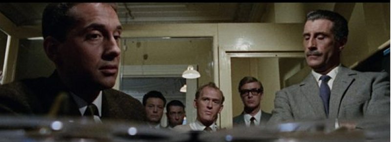 MICHAEL CAINE, NIGEL GREEN, GUY DOLEMAN, SUE LLOYD, GORDON JACKSON, AUBREY RICHARDS, FRANK GATLIFF, THOMAS BAPTISTE, COLIVER MacGREEVY, FREDA BAMFORD, PAULINE WINTER, ANTHONY BLACKSHAW, BARRY RAYMOND, DAVID GLOVER, STANLEY MEADOWS
