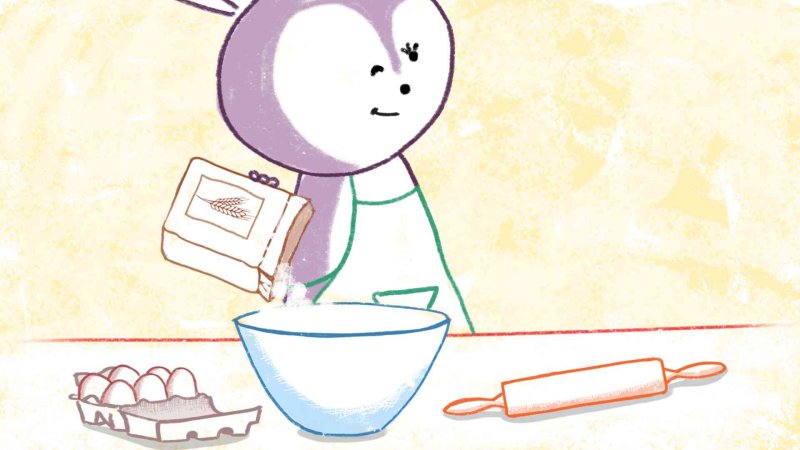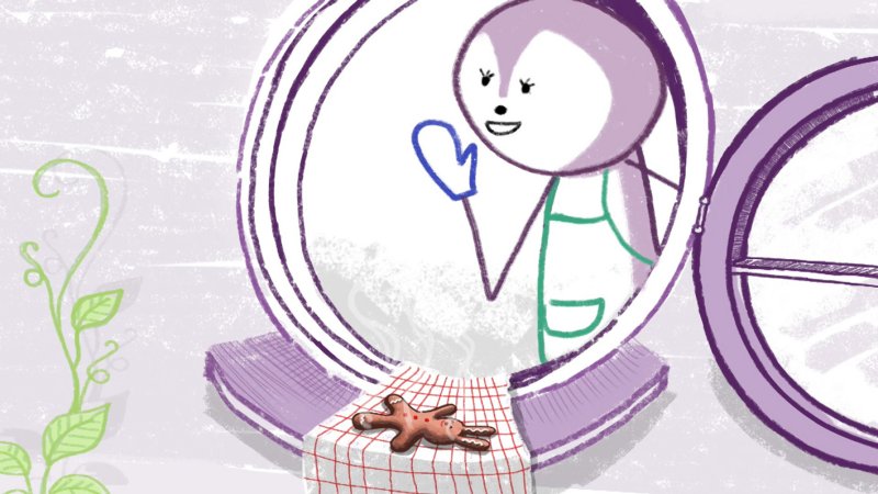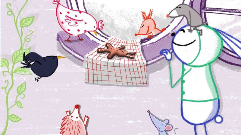 La madre del conejo ha cocinado a su niño una galleta con forma de un conejito. Mientras espera con sus amigos que esté bien horneada, la galleta huye hacia el bosque.