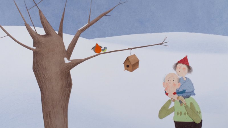 Mientras llegan las primeras nieves, Lily y su abuelo construyen una casa para los pájaros. Pero ¿cómo se resguardarán del frío del invierno los otros animales? Por si sirve de algo, Lily deja sobre la nieve uno de sus guantes.