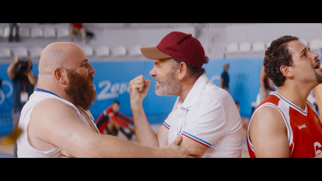 La de la final es la escena más grande que he tenido que filmar. Clément y Vincent hacen teatro, pero no juegan al baloncesto. Además, de todo el equipo, sólo Olivier Barthélémy juega bien. Así que, hacer creer que todos están jugando en los Juegos Olímpicos... Los Juegos Paralímpicos no son la NBA, por supuesto, pero aun así, existe un nivel. Tuvimos un verdadero entrenador que cuidó muy bien a Clément y Vincent para los gestos sencillos, y luego para diseñar los movimientos del juego. Pero el deporte en sí no me interesa tanto: me sirve de telón de fondo para tratar con el colectivo que suprime los prejuicios. Incluida la discapacidad física. Me interesó especialmente la secuencia en la que Pippo, el más burlón, acaricia las piernas de Rose. La escena no estaba escrita y saqué a todo el equipo del plató durante dos horas para ensayar con los dos actores, Olivier Barthélémy y Nicole Kirby, para tratar de encontrar el enfoque correcto para esta secuencia.