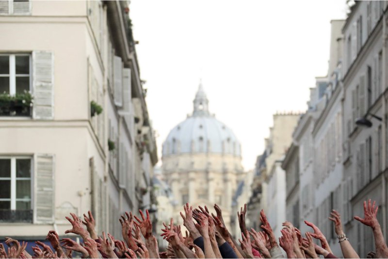 El videojuego está en mí y es parte de mi cultura, pero este no es el caso de los otros dos guionistas, y si la película te hizo pensar en ello, fue algo inconsciente por mi parte. No quería hacer una película de terror para asustar. Las escenas en las que vemos cohortes de zombies al aire libre respetan los códigos de género sin intención de impresionar. Si quisiera eso, habría filmado por la noche, en primer plano, con la cámara en el suelo, por ejemplo, para producir muchos efectos con pocos medios. Elegí lo opuesto: disparos amplios durante el día, que de hecho son totalmente antidramáticos, que desactivan la tensión.