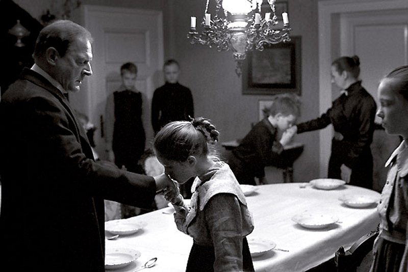 - Hacía más de diez años que trabajaba en el proyecto. Mi principal objetivo era presentar a un grupo de niños a los que se inculcan valores considerados como absolutos y cómo los interiorizan. Si se considera un principio o un ideal como algo absoluto, sea político o religioso, se convierte en inhumano y lleva al terrorismo. También había pensado en otro título para la película, “La mano derecha de Dios”, ya que los niños aplican al pie de la letra los ideales y castigan a aquellos que no los respetan al cien por cien. Por otra parte, la película no habla solo del fascismo, sería una interpretación demasiado fácil al transcurrir la historia en Alemania, sino del modelo y del problema universal del ideal pervertido.