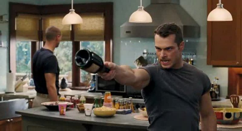El choque del Hummer llevó unas siete semanas de preparación y ejecución, y fue la toma más extensa de especialistas de la película. La versión de interiores de la ventana de bahía se construyó en madera balsa y cristal falso, para disminuir las posibilidades de lesiones por restos pesados que salieran volando. Además, el enorme vehículo choca contra una mesa de comedor llena de comida y vajilla. Cuando llegó el momento del rodaje, todos los platos de verdad y la vajilla de plata se cambiaron por piezas de plástico o acrílico, para prevenir los potenciales dañinos “proyectiles”. La secuencia se rodó con cinco cámaras.