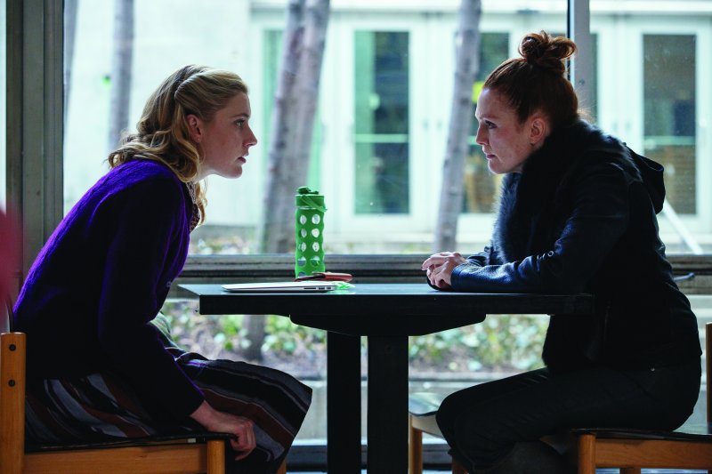 La fuerza y el registro de Moore como actriz no se le pasaron por alto a Gerwig, y además encajaban bien con la química que había entre sus personajes. “Por suerte, se supone que en la película debo sentirme intimidada por el personaje de Julianne, Georgette”, comenta Gerwig riendo. “No es una persona intimidante; Julianne es una mujer dulce y maravillosa. Pero es una actriz formidable. E interpreta a una genio danesa, con acento, y es sumamente guapa e hipnótica. Descubrí en mi primer día de rodaje con ella que se me habían olvidado todas mis líneas, porque me quedé completamente embelesada con ella. Aunque fue bien, porque encaja con la dinámica que hay entre los personajes”. El talento de Moore animó a todos durante el rodaje, e intensificó el tono de la película. Gerwig prosigue: “Interpreta con una precisión enorme. Tiene la capacidad de hacer girar el timón un grado, y luego otro grado más. Es verdaderamente impresionante. Te obliga a esforzarte más, y eleva cualquier cosa a la que se acerque. Haz lo que puedas por seguirle el ritmo y simplemente con eso ya quedarás bien”.