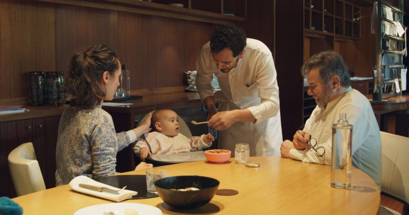 Las escenas de la película también incluyen la compra de verduras frescas en el mercado, visitas a una planta procesadora de queso, un viñedo, un rancho ganadero que trabaja en mejores prácticas agrícolas y un agricultor orgánico cuya granja, junto con el jardín del restaurante, proporciona productos orgánicos. para los restaurantes. El interés de la familia Troisgros por la biodiversidad se ilustra en la elección y preparación de su menú distintivo y en sus esfuerzos por reducir el desperdicio de alimentos. La película muestra el gran ingenio artístico, la imaginación y el arduo trabajo del personal del restaurante para crear, preparar y presentar comidas de la más alta calidad. Además, la colaboración dentro de la familia Troisgros es evidente ya que el padre, Michel, transfiere el liderazgo de la cocina a su hijo, César, y colabora con su esposa, que dirige el hotel, y su otro hijo, Léo, que dirige La Colline.