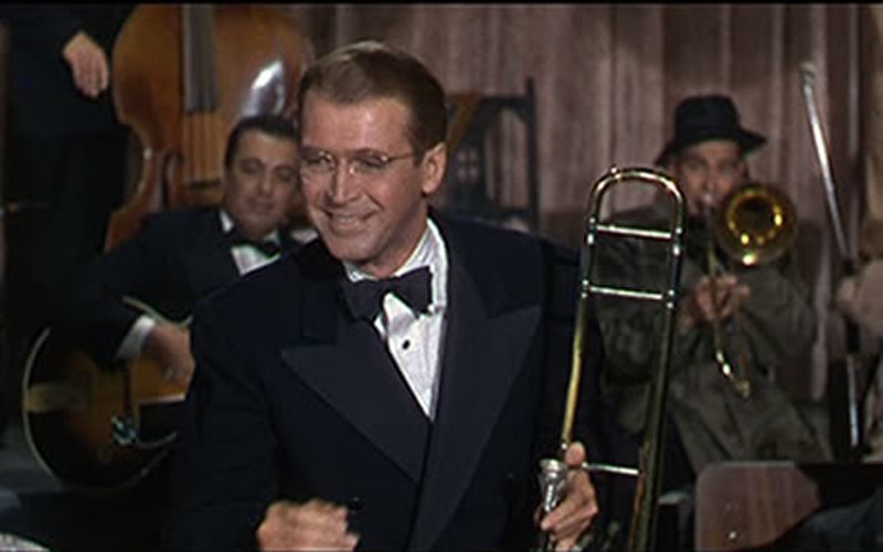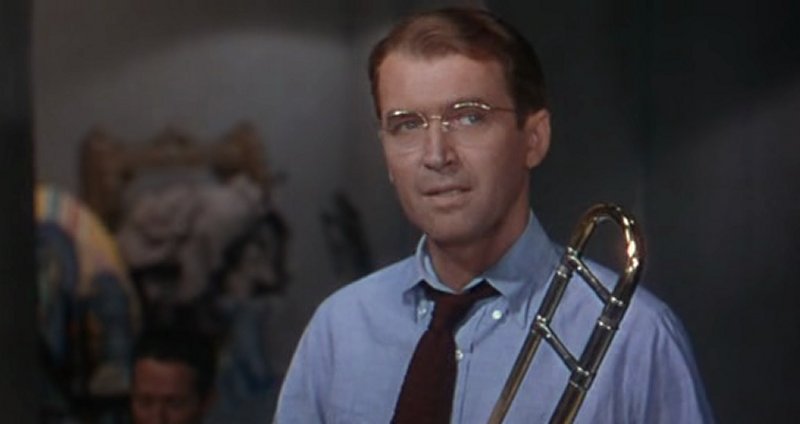 JAMES STEWART, JUNE ALLYSON, HARRY MORGAN, CHARLES DRAKE, GEORGE TOBIAS, BARTON MacLANE, SIG RUMAN, IRVING BACON, JAMES BELL, KATHLEEN LOCKHART, KATHERINE WARREN, FRANCES LANGFORD, LOUIS ARMSTRONG, BEN POLLACK, GENE KRUPA
