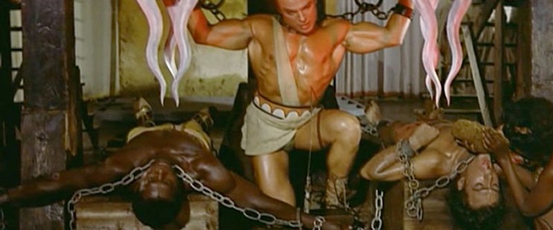 Maciste en compañia de su hérculeo compañero de color se enfrenta a un imperio subterraneo, compuesto de hombres que se deshacen a la luz del sol...