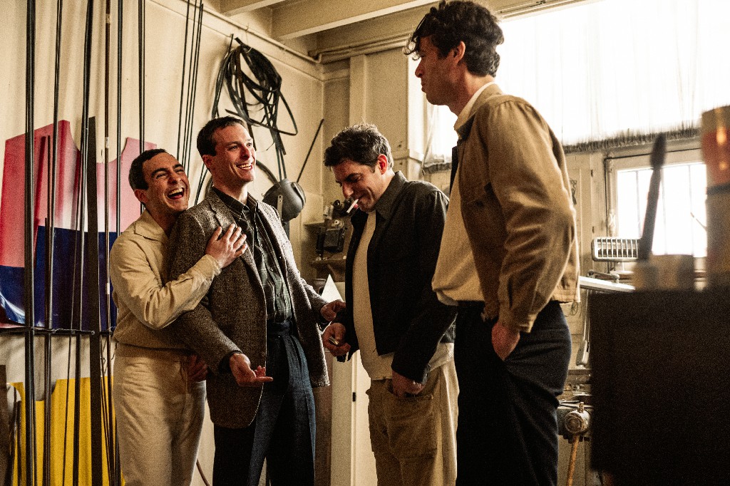 Marion Moules y Matthieu Camblor, en el vestuario, también tuvieron su parte en trazar este pasaje, la evolución de Niki. Pasaron de la rigidez de los años 50 a cada vez más color y extravagancia. Las primeras pruebas de vestuario de Charlotte fueron abrumadoras, mientras veíamos a Niki cobrar vida. Su trabajo plantó pistas sobre su poesía (al igual que las %inspiraciones mencionadas anteriormente). Niki también era el pájaro en la película, enjaulada... las plumas la siguen, la adornan, la materializan. Al final, ella vuela alto.