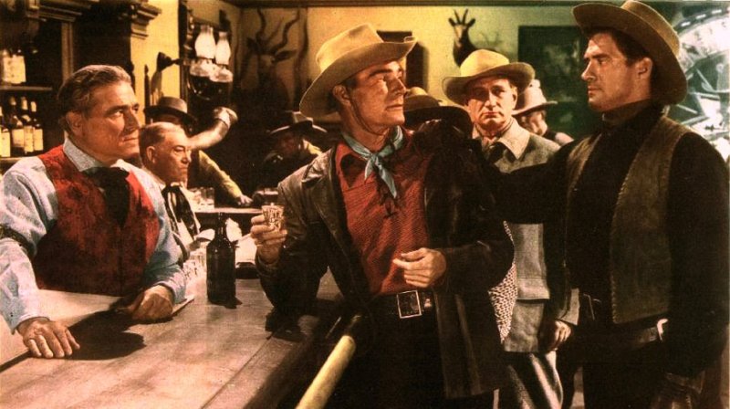 RANDOLPH SCOTT, DOROTHY MALONE, FORREST TUCKER, FRANK FAYLEN, GEORGE MACREADY, CHARLES KEMPER, JEFF COREY, TOM POWERS, JOCK MAHONEY