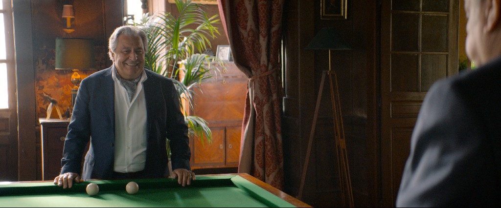 Bueno, lo cierto es que hay dos magníficas residencias: una para los interiores y otra para los exteriores. La primera es el castillo de Montaigne, el escritor, en la frontera entre la Dordoña y la Gironda. Está situado en un pequeño pueblo, Saint-Michel de Montaigne, y es un castillo muy bonito y original, las paredes de las habitaciones están pintadas de color ocre, algo que es bastante raro en este tipo de lugares. También es un castillo que no está muy visto porque es un lugar privado, donde la abuela de la familia vivió hasta hace poco. Quería algo grandioso, cuando Gérard Martin y su esposa cruzan las puertas en su reluciente Peugeot se sienten abrumados por el lugar. Piensan que es magnífico y que no están a la altura de los Bouvier-Sauvage. Además, se van a encontrar con un tipo odioso, engreído y muy orgulloso de sus orígenes. De hecho, Christian me animó a trabajar en este aspecto del personaje, diciéndome que tenía que ser encantador pero falso. Como si formar parte de su familia fuera una especie de maldición. En el sótano habla de sus "malditos orígenes", como si tuviera que estar a la altura de todo eso, disculpándose por no poder aceptar que su hija se casara con el hijo de Didier. Y el escenario ayuda a dar forma a todo, especialmente la galería de retratos donde Christian le asombra con su herencia.