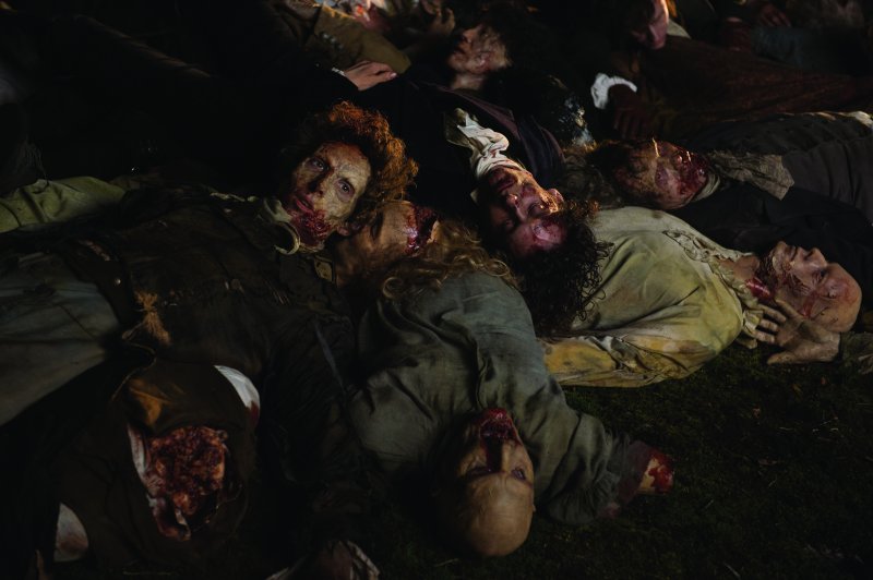 “Pasamos varios meses preparandonos para eso, creando miles de piezas prostéticas. Las hicimos de manera que fueran adaptables y las pudiéramos usar con varias personas, que encajasen de alguna manera. Así que los días que había 40 zombis, teníamos a 30 personas de mi departamento convirtiéndolos en zombis y estaban ocupados durante horas preparándolos. Y después teníamos a gente en el set poniendo sangre y pegotes, que requerían un mantenimiento constante porque el maquillaje se desgasta con el roce. Teníamos muchos miembros cortados y partes de cuerpos e hicimos entre 20 y 30 cuerpos que se tiraron aquí y allá. Teníamos zombis especiales como el que lleva un hacha en la cabeza, zombis huérfanos, en fin, bastante inquietante,” dice Coulier.