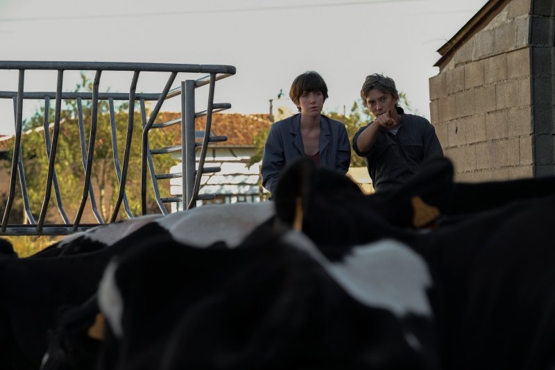 Luego estan los actores no profesionales, como en mis cortometrajes. Primero, miembros de la familia. Mi madre es la inspectora de productos lacteos, mi padre es el padre de Pierre y mi abuelo es Raymond, el viejo vecino. También algunos amigos mios estuvieron alli desde el principio: Valentin, que interpreta a JD, el dueno del restaurante, y Julian, que interpreta a Thomas en el silo de cereales. Valentin tiene un lugar propio, tiene un carisma raro y no puedo imaginarme construir un proyecto sin él.