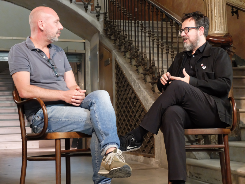 La idea nos fascinó y esa misma tarde todo comenzó a coger forma. Nos animamos y empezamos a considerar diversas líneas narrativas, pero antes necesitábamos la complicidad de Paco Plaza y Filmax. Al llegar a casa esa misma noche llamé rápidamente a Paco, le expliqué todo lo hablado con Jaume ¡y se sumó encantado al proyecto! A los pocos días ya estábamos reunidos con Filmax para cerrar todos los flecos; el 1 de agosto de 2021 empezábamos a rodar con Jaume y Paco su entrevista en el emblemático edificio de Rambla de Catalunya.