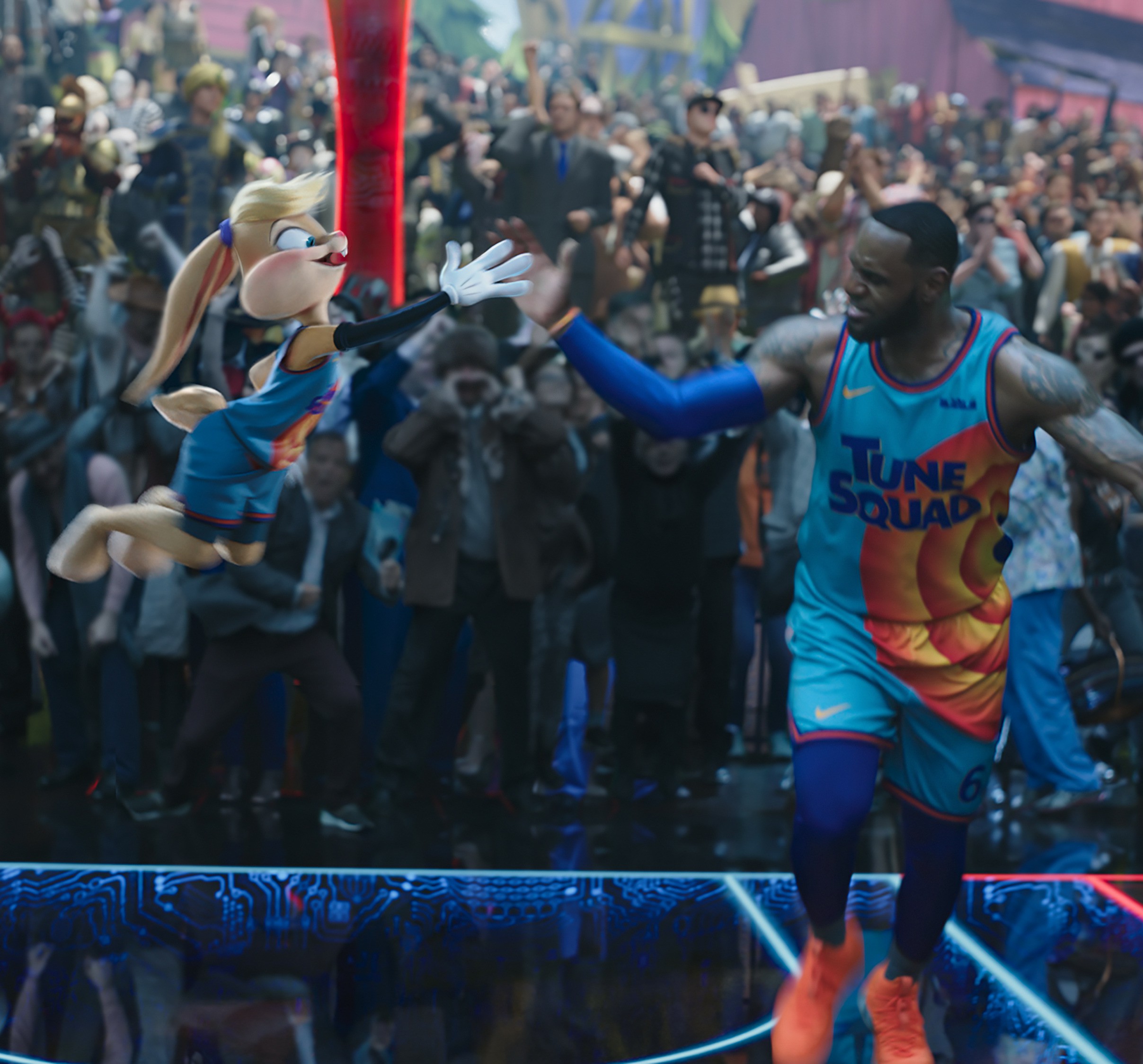 Rhodes está de acuerdo con esa aseveración. “A pesar de que hay una historia muy profunda sobre un padre y un hijo, queríamos que siguiera siendo muy divertida. Y eso nos lo recordaron los efectos, los personajes que flotan por el espacio, LeBron atravesando el espacio, el server-verse, los partidos entre Bugs Bunny, Lola y Porky. Eso nos ayudó a mantener un feeling más ligero”.