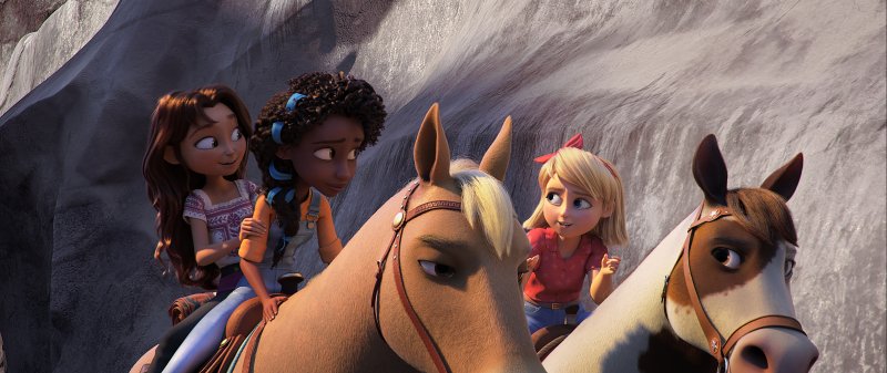 Con todo lo aprendido, fue mucho más orgánico para el equipo técnico crear características únicas para los caballos, e incluso diseñaron uno de los caballos de la manada de Spirit basándose en el caballo en la vida real de Bogan, Ziggy Stardust. «Hay un par de caballos en la manada a los que intentamos conferir personalidades específicas», dice Bogan. «A Ziggy lo retrataron como un teniente escéptico. Es una especie de segundo al mano cuando Spirit no está. Es, por tanto, muy cauto y desconfiado con los humanos. Tenemos también una yegua a la que llamamos Daisy que siempre está comiendo flores y que termina emparejándose con otro caballo de la manada. Si te fijas en ellos en la película, pese a estar siempre en segundo plano, verás que hay un pequeño arco argumental en esa historia. Y también hay una mamá yegua con su potrillo, que, cómo no, es irresistiblemente adorable».
