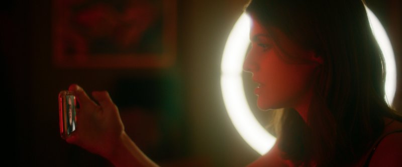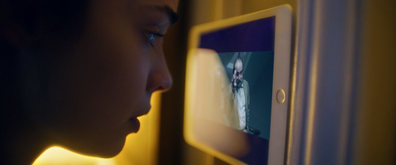 “Siempre he pensado que es una de las imágenes más fuertes de toda la película”, dice el director. “Colocamos dos cámaras con objetivos idénticos a cada lado de la puerta, una para KJ y otra para Sofia. Pero cuando los vi en los monitores, comprendí que la escena debía ser vista en una pantalla partida, sobre todo por el diálogo que surgió en ese momento. Sofia dice: “Tengo la sensación de que puedo sentirte a través de la puerta”.