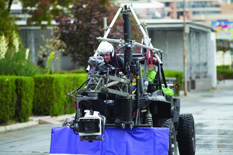 El director de fotografía Shelly Johnson cuenta lo que costó preparar el Dominator para la gran pantalla desde el punto de vista técnico: “Rob dijo: ‘Shelly, vamos a estar rodando muchas escenas en nuestro vehículo para tormentas. Es como un laboratorio sobre ruedas, y es un gran vehículo, y tenemos como 30 páginas de diálogo dentro de este vehículo. Todo durante una tormenta, todo durante el huracán’.” Inmediatamente, Shelly supo que esto suponía que el típico método de enganchar cámaras en un lateral del coche (al estilo de Fast and Furious) no valdría. La armadura del Dominator era demasiado gruesa, y el interior demasiado apretado con los instrumentos meteorológicos como para poder meter una cámara dentro. Era un vehículo sellado. Esto suponía un problema.