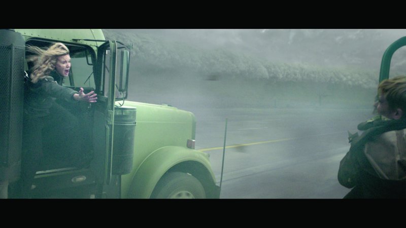 Para esta escena tan compleja con páginas y páginas de diálogo, con actores que a la vez están conduciendo, haciendo cálculos, comprobando datos meteorológicos y generando una química entre ellos, era imprescindible que pareciese que fuera hubiese un huracán de categoría 5 devastándolo todo, sin que los actores tuvieran que interpretar sus papeles mientras esquivaban buzones o cristales por el aire. “Así que fue un reto bastante bueno,” comenta Shelly.