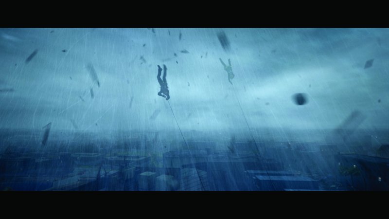 “Es mucho más fácil cuando dices: ‘sales de tu coche y casi sales volando‘, y creas una situación en el set en el que haces que eso ocurra,” dice Cohen. “Así que si sale del coche y no se protege, saldrá volando. No había que actuar cuando se lanzaban más de 160.000 litros de agua a un grupo de actores y de dobles de acción. Eso les tira por los suelos literalmente, como si fuera un tsunami. Lo ves y dices ‘eso no es falso’, ¿sabes?”