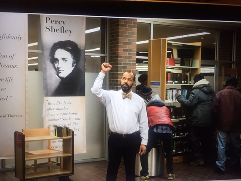 La historia gira en torno a los clientes de una biblioteca, muchos de los cuales son personas sin hogar, enfermos mentales y marginados, así como un equipo agotado y abrumado de bibliotecarios que a menudo establecen conexiones emocionales y un sentido de obligación de cuidar de esos usuarios habituales. En desacuerdo con los funcionarios de la biblioteca, los clientes terminan convirtiendo el edificio en un refugio para personas sin hogar por la noche organizando una sentada...