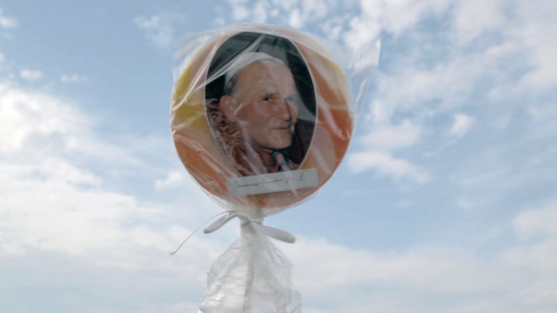 Una piruleta oficializada por el Vaticano hace saltar la chispa de esta exploración de 20 años sobre la fama, los souvenirs y el legado de tres iconos culturales: el Papa Juan Pablo II, Elvis Presley y Diana, la princesa de Gales...