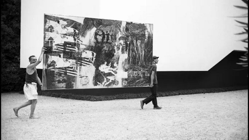 Durante la Guerra Fría, el gobierno estadounidense está decidido a combatir el comunismo con la cultura. La Bienal de Venecia, la exposición de arte más influyente del mundo, se convierte en 1964 en un campo de pruebas. Alice Denney, conocedora de Washington y amiga de los Kennedy, recomienda a Alan Solomon, un ambicioso comisario que causa sensación con su arte pionero, para organizar la participación de Estados Unidos. Junto con Leo Castelli, un poderoso marchante neoyorquino, se embarcan en un audaz plan para que Robert Rauschenberg sea el ganador del Gran Premio. El artista aún no ha sido tomado en serio con sus combinaciones de chatarra de la calle e imágenes de la cultura pop, pero tiene potencial para deslumbrar. El equipo estadounidense, que realiza hábilmente maniobras que podrían haber salido de una película de Hollywood, deja a la prensa internacional llorando y a Rauschenberg cuestionando la política nacionalista que le envió allí...