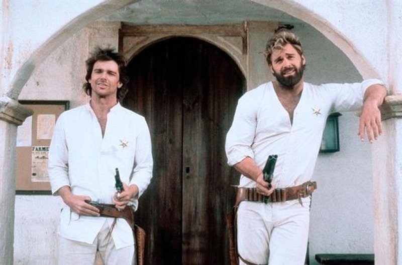Trinidad conoce a un individuo, cuyas connotaciones corresponden a las de su hermano Bambino, quien ha sido acusado de asesinar a unos hombres y robar unos caballos. Trinidad sustituirá al verdugo que debe ahorcar a su hermano y logrará salvarlo de la muerte. En la fuga se detienen en un pueblo. Allí sabrán de un sheriff relacionado con los verdaderos autores de los delitos. La acogida es muy calurosa y los nombran sheriffs del pueblo. Como primera medida, imponen la de deponer las armas en "el árbol de las pistolas" a todo aquel que desee entrar en el pueblo. Gracias a sus habilidades con los puños y las armas, consiguen las pruebas que culpabilizarán a los auténticos responsables...