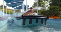 El equipo de efectos especiales utilizó unos cabestrantes hidráulicos que se cerraban muy rápidamente si se producía una emergencia y frenos que hacían que el monorraíl se parara en una marca muy concreta, se abriera la puerta automáticamente y el reparto pudiera salir. El equipo utilizó una enorme hidráulica de 500 caballos y cable de acero pesado para hacer avanzar y retroceder el monorraíl en los dos cabestrantes. Vezina añade: “Para mantener la posición utilizamos rayos láser que nos decían con un milésimo de centímetro de error si el monorraíl se pasaba de la marca para que pudiéramos desconectarlo. Afortunadamente no fue necesario utilizar los mecanismos de seguridad porque funcionó perfectamente todo el tiempo”.