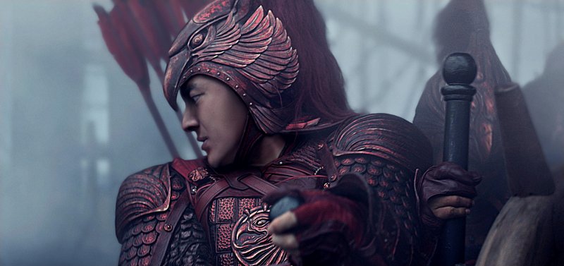 Más tarde, cuando se convierte en miembro del Cuerpo de los Águilas, Matt Damon lleva el uniforme rojo para luchar al lado del actor chino Lin Gengxin, que encarna al general de ese regimiento.