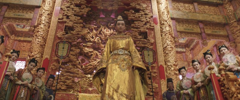 Otro espléndido decorado es la Sala del Trono dentro del Palacio Imperial. "La historia se desarrolla durante la dinastía Song, en el siglo XII, y todos los detalles pertenecen a la época", explica el diseñador de producción. "Wang Kuo, un maravilloso director artístico chino, se ocupó de todo. Diseñé la película, pero Wang Kuo es el autor de este decorado. Doy fe de que es fiel a la arquitectura de la dinastía Song y que solo la escultura del dragón que se ve detrás del trono es algo diferente. Es muy teatral e increíblemente bello".