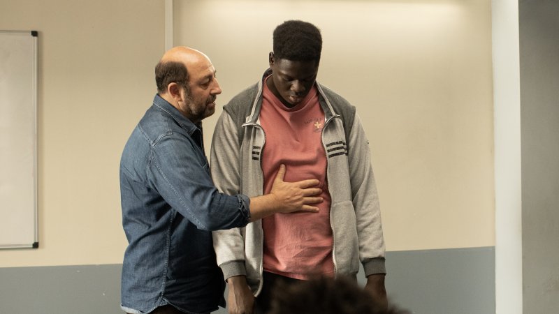 Cuando seguí a Hervé Sika en su trabajo, vi que se mostraba muy exigente con sus actores y en algunas ocasiones duro e intransigente. Lo mismo ocurre con Étienne: es un artista exigente que no juega a ser el típico coordinador sociocultural y así se gana la confianza y el respeto de sus actores. Si haces teatro, haces teatro de verdad. Los prisioneros ponen a prueba a las personas y lo hacen con humor. Son entrañables pero no están donde están por casualidad. Los incidentes son raros, pero hay inestabilidad entre ellos y la lucha por el poder puede surgir en cualquier momento. Étienne se da cuenta enseguida de que puede perder el control rápidamente, pero se impone gracias a su autoridad y a su pasión. Inconscientemente, su búsqueda de reconocimiento se cruza con la de los prisioneros y él sufre su propia "reinserción", como le dice su hija Nina con bastante rencor. Como personaje, no sabemos de inmediato si nos va a gustar o no, pero nos engancha, sobre todo porque Kad Merad aporta toda su humanidad al personaje. Étienne es modesto, no muestra sus sentimientos. Pero cuando llega el momento de hacer una reverencia, está orgulloso de sus actores y orgulloso de sí mismo.