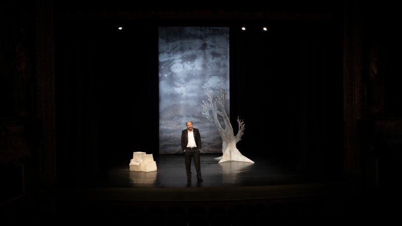 Étienne improvisa pero, poco a poco, se da cuenta de que es genial estar en el escenario del teatro Odéon. Comprende que la gente lo está escuchando, ve que las luces de la sala son cada vez más tenues, así que va a por todas y termina su historia con algunas líneas de Beckett. Ya está. ¡He hecho algo de Beckett en el Odéon! ¿Hará alguna vez toda la obra? Seguramente no. Pero creo que volverá a poner en escena "Esperando a Godot" para interpretarlo de nuevo con su amigo Stéphane.
